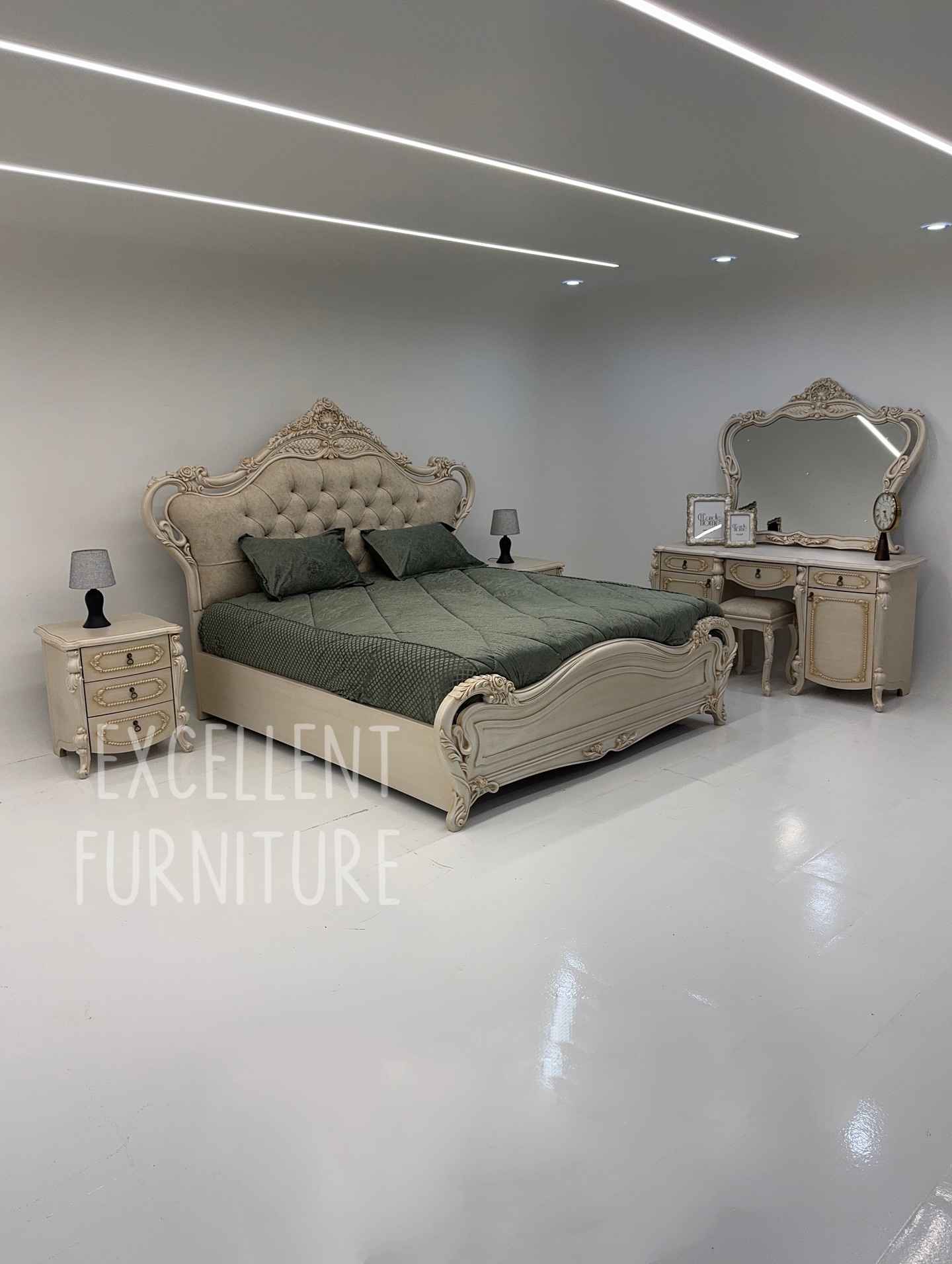 The royal design and detailed woodwork make this set a popular choice for bridal rooms and premium residential spaces. It complements modern décor, traditional setups, and luxury interiors with ease. If you're searching for high-end bedroom furniture in Pakistan, this set stands among the best choices.